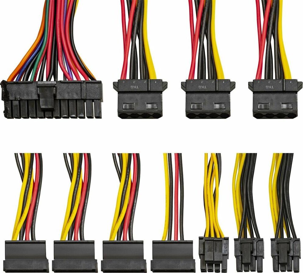 Общее описание Особенности Питание Форм-фактор: ATX 12V v2.3 Входное напряжение, В: 115-253 Максимальная выходная мощность, Вт: 550 Основные характеристики PFC (Корректор фактора мощности): Активный Среднее время наработки на отказ, часов: 120000 Максимальный входной ток, А: 8 Диапазон входных частот, Гц: 47-63 Эффективность, %: 80 (соответствие 80 Plus) Охлаждение Вентилятор, см: 14 Уровень шума, Дб: 23-26 Выходной ток: +3.3B, А: 21 +5B, А: 18 +12B1, A: 21 +12B2, A: 21 -12B, A: 0,3 +