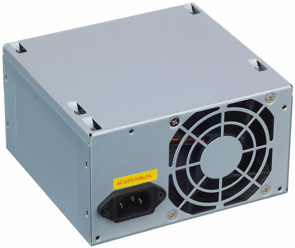 Общее описание Особенности Питание Форм-фактор: ATX 12V v2.3 Входное напряжение, В: 115-253 Максимальная выходная мощность, Вт: 450 Основные характеристики PFC (Корректор фактора мощности): Отсутствует Среднее время наработки на отказ, часов: 100000 Максимальный входной ток, А: 8 Диапазон входных частот, Гц: 47-63 Эффективность, %: 72 Охлаждение Вентилятор, см: 8 Уровень шума, Дб: 30-35 Выходной ток: +3.3B, А: 21 +5B, А: 15 +12B1, A: 16 +12B2, A: 16 -12B, A: 0,3 +5Bsb, A: 2,5 Мощность