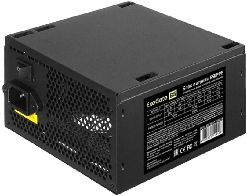 [Блок питания] Блок питания ATX Exegate 550PPE EX282072RUS-PC 550W, PC, black, APFC, 12cm, 24p+(4+4)p PCI-E, 3*IDE, 5*SATA, FDD + кабель 220V в комплекте
