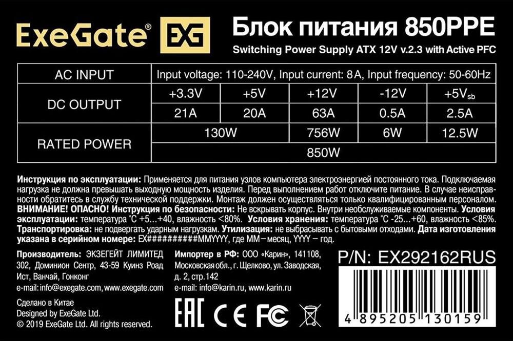 Блок питания EXEGATE EX292162RUS