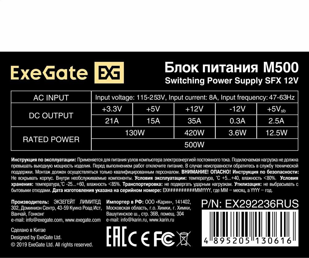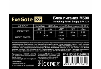 Форм-фактор: SFX, что делает его компактным и подходящим для установки в небольшие системные блоки. - Мощность: 500 Вт, обеспечивает достаточную мощность для работы современного компьютерного оборудования. - Сертификат 80 PLUS: имеет сертификат Silver, что гарантирует высокую энергоэффективность и меньшее потребление электроэнергии. - Коррекция коэффициента мощности (PFC): активная коррекция PFC помогает повысить эффективность и стабильность работы блока питания.