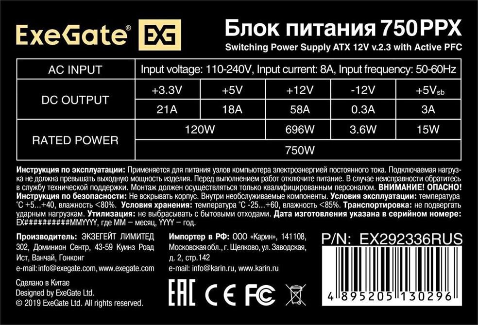 Общее описание Особенности Питание Форм-фактор: ATX 12V v2.3 Входное напряжение, В: 115-253 Максимальная выходная мощность, Вт: 750 Основные характеристики Модульный: Да PFC (Корректор фактора мощности): Активный Среднее время наработки на отказ, часов: 120000 Максимальный входной ток, А: 8 Диапазон входных частот, Гц: 47-63 Эффективность, %: 80 (соответствие 80 Plus)
