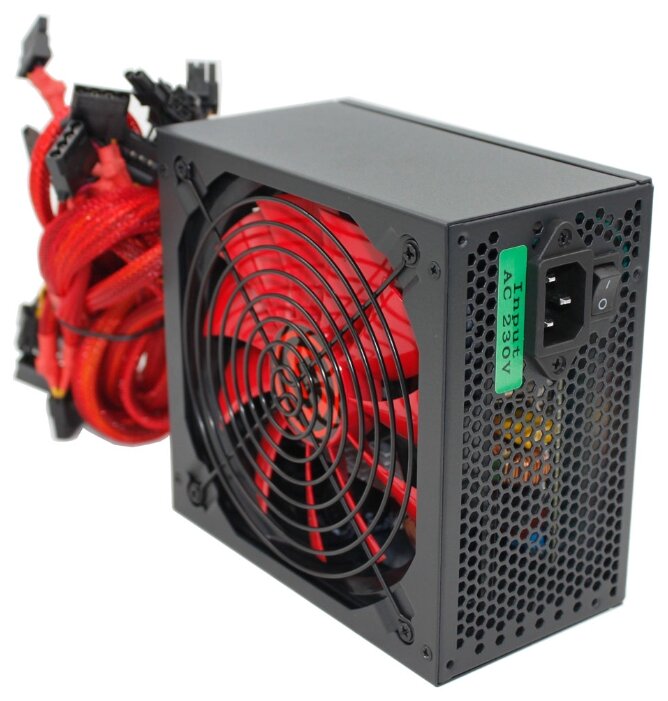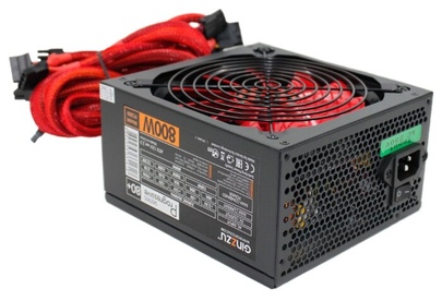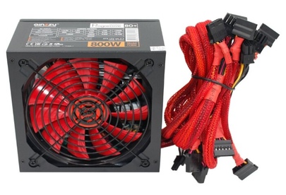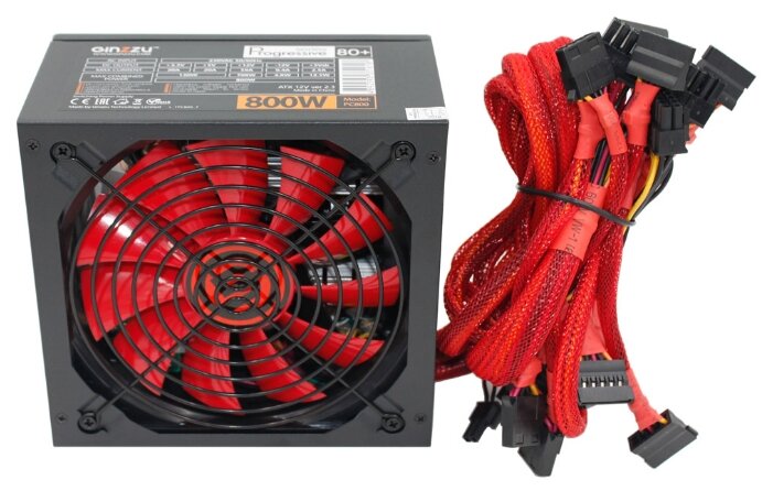 Блок питания GINZZU PC800 14CM(Red) 80+ black,APFC,24+4p,4 PCI-E(6+2), 7*SATA, 4*IDE,оплетка, кабель питания,цвет
