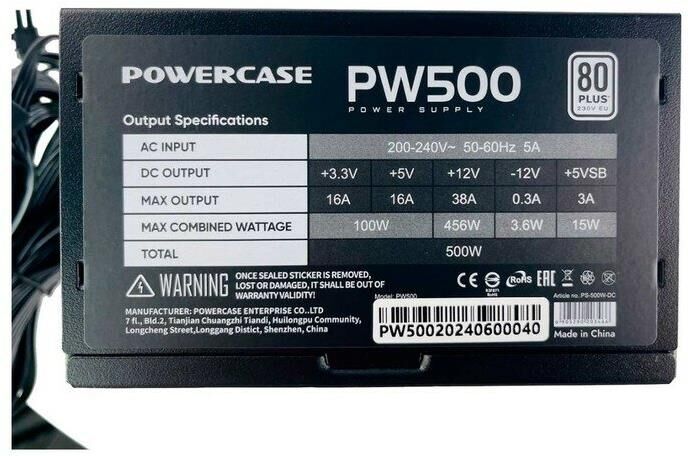 [Блок питания] Powercase PW500 (80 Plus, ATX 2.31, 500W, APFC, DC-DC, 120mm Fan) / PS-500W-DC