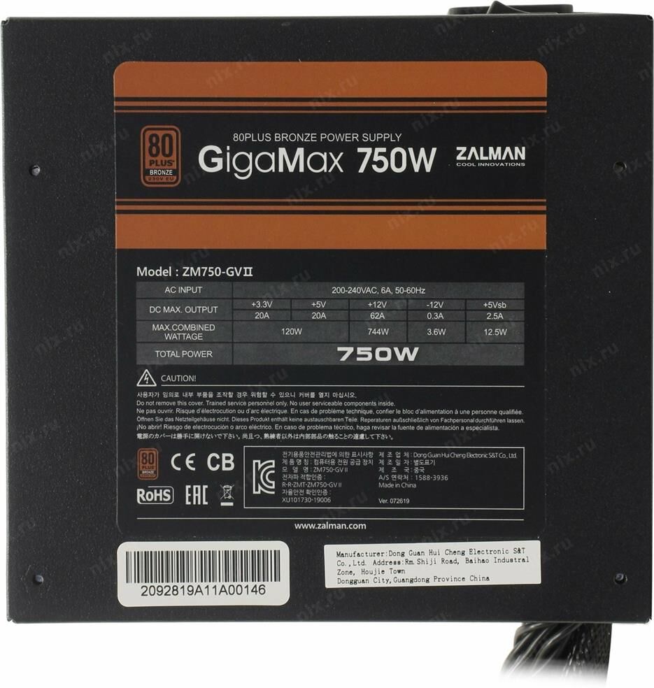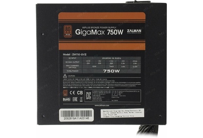 Блок питания Zalman GVII ZM750-GVII, 750W, ATX12V v2.31, EPS, APFC, 12cm Fan, 80+ Bronze, Retail