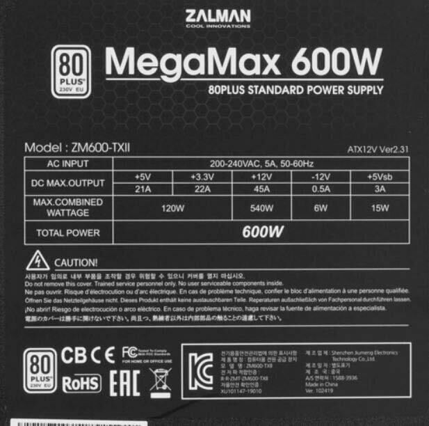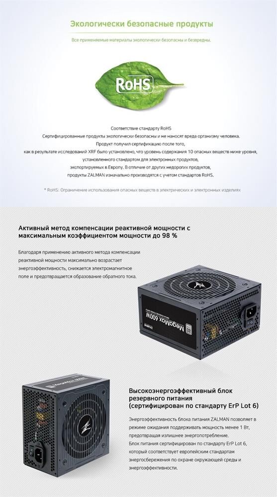Блок питания Zalman TX ZM600-TXII (V2) 600W, ATX12V v2.3, APFC, 12cm Fan, 80+, Ret