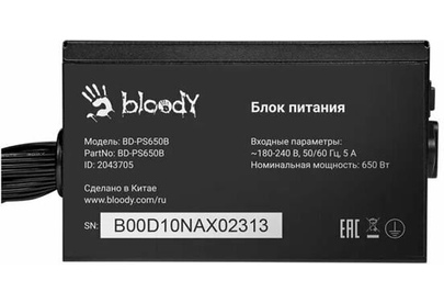 BLOODY Блок питания ATX 650W BD-PS650B 80+ bronze (20+4pin) APFC 120mm fan 6xSATA RTL