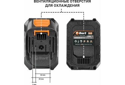 Аккумуляторная батарея Bort BA-21U емкостью 4 амперчаса серии ReX. Пиковая токоотдача 75 ампер, стабильная выходная мощность более 1кВт. Может заряжаться слайдерной и штырьковой зарядкой. Собрана на базе высокотоковых элементов типа 18650. Ключевые особенности аккумуляторов серии Real Extreme (ReX): Очень высокая токоотдача с инструментом. Увеличение мощности до 50% по сравнению с обычными аккумуляторами. Имеют множество систем защит таких как: защита от перегрузок защита от глубокого переразряда защита от перезаряда защита от перегрева защита от короткого замыкания Все аккумуляторы совместимы с инструментом Макита 18V LXT и их аналогами. Самое идеальное сочетание для максимальной производительности и надежности, это работа инструментом Bort линейки Heavy Duty серии Torque Innovation (Ti) с аккумуляторной серией Real Extreme (ReX). В такой связке вы получите максимальное качество и мощность, которые отвечают современным требованиям в различных сферах применения.
