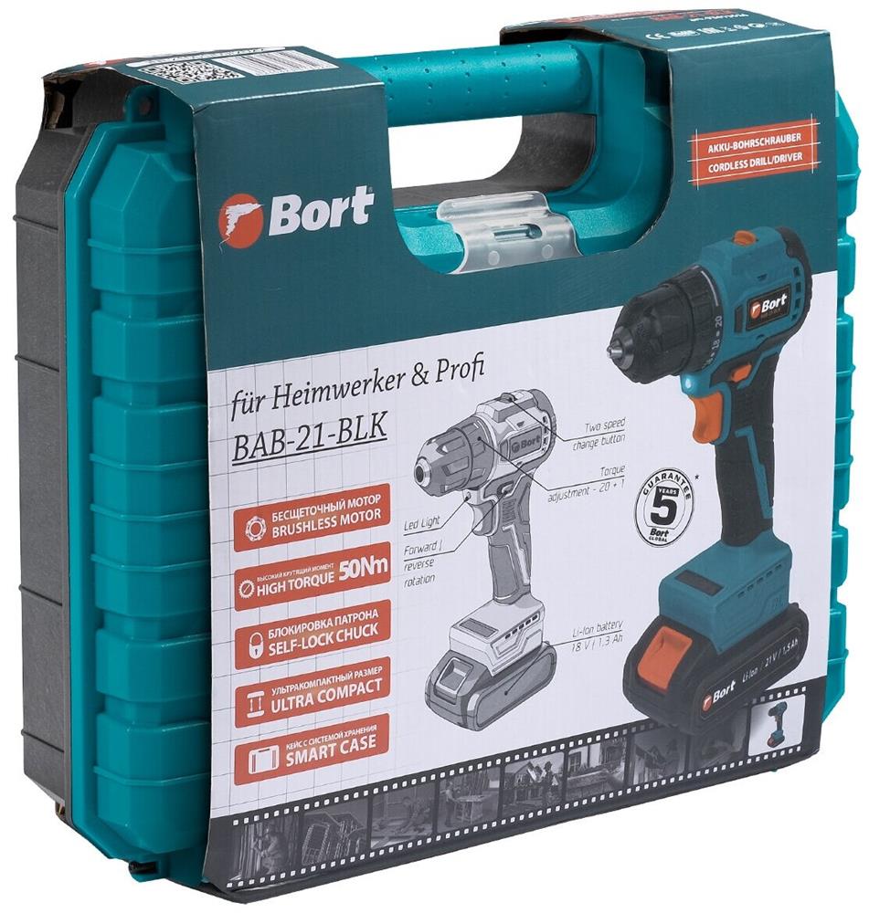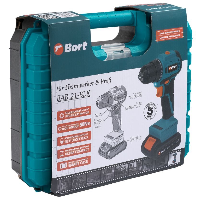 Brand: BORT EAN13: 4260623413526 Блокировка шпинделя: Да Вес брутто, кг: 2,33333 Вес изделия, кг: 1,1 Вес нетто, кг: 2 Время зарядки аккумуляторной батареи, ч: 1,5 Габариты упаковки, см: 28 x 9 x 23,5 Гарантия, г: 2 Двигатель: Бесщеточный двигатель Диаметр патрона, мм: 1...10 Индикатор зарядки: Да Количество аккумуляторных батарей, шт: 2 Количество скоростей, шт: 2 Максимальный крутящий момент, Нм: 50 Модель: BAB-21-BLK Моментальная остановка: Да Наличие удара: Нет Напряжение аккумуляторной батареи, В: 21 Подсветка рабочей зоны: Да Расширенная гарантия, г: 5 Реверс: Да Регулировка крутящего момента, шт: 20+1 Скорость холостого хода 2, об/мин: 0...1 350 Скорость холостого хода, об/мин: 0...350 Тип: Дрель-шуруповерт аккумуляторная Тип аккумуляторной батареи: Li-Ion Тип патрона: Быстрозажимной Энергоемкость аккумуляторной батареи, Ач: 1,5