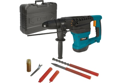 бур SDS max, долото пикообразное, дополнительная рукоятка, смазка, ограничитель глубины сверления, ключ, кейс