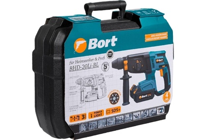 Двигатель: Бесщеточный двигатель. Индикатор зарядки: Да. Модель: BHD-20Li-BL. Напряжение аккумуляторной батареи, В: 20. Подсветка рабочей зоны: Да. Расширенная гарантия, г: 5. Реверс: Да. Режим долбление: Да. Режим сверление: Да. Режим сверление + удар: Да. Скорость холостого хода, об/мин: 0...1 200. Тип аккумуляторной батареи: Li-Ion. Тип патрона: SDS+. Частота ударов, уд/мин: 0...5 300. Энергия удара, Дж: 2,8. Энергоемкость аккумуляторной батареи, Ач: 4. Вес брутто, кг: 6,5. Вес изделия, кг: 3,4. Вес нетто, кг: 4,7. Время зарядки аккумуляторной батареи, ч: 1. Габариты упаковки, см: 45 x 35,5 x 14,2. Гарантия, г: 2.