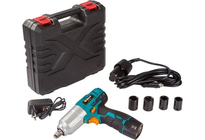 Гайковерт ударный, Напряжение 12 В, Длина кабеля 4 м, Вес изделия 1,5 кг, Тип аккумуляторной батареи Li-Ion, Количество аккумуляторных батарей 1 шт, Габариты упаковки 29x8x25 см, Емкость заряжаемого аккумулятора 2 Ач, Максимальный крутящий момент 350 Нм, Скорость холостого хода 5 500 об/мин, Мастер-бокс 5 шт, Посадочный размер головки 1/2 дюйм, Подсветка рабочей зоны, В КОМПЛЕКТЕ Шнур для подключения к автоприкуривателю (1 шт), Головки 1/2" (17мм, 19мм, 21мм, 22мм) (4 шт), Зарядное устройство (1 шт), Аккумуляторная батарея (1 шт), Кейс (1 шт).