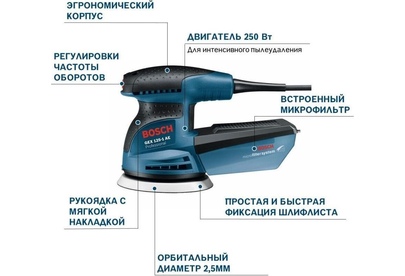 Мощность (Вт) 250.. Количество отверстий 8 Число оборотов (об/мин) 7500-12000. Диаметр диска (мм) 125. Диаметр патрубка пылесоса (мм) 19. Размер абразивной бумаги (мм) 1.3. Амплитуда колебаний (мм) 2,5. Частота колебаний (кол/мин) 15000-24000. Крепление шлифлиста липучка. Плавный пуск нет. Поддержание постоянных оборотов под нагрузкой да. Регулировка оборотов есть. Регулировка частоты вращения есть. Возможность подключения к пылесосу есть. Вес (кг) 1,3.