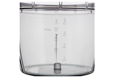 Мощность 400 Вт. Емкость чаши 0.8 л. Импульсный режим. Чаша из высококачественного ударопрочного пластика. Можно мыть в посудомоечной машине. Безопасное включение.