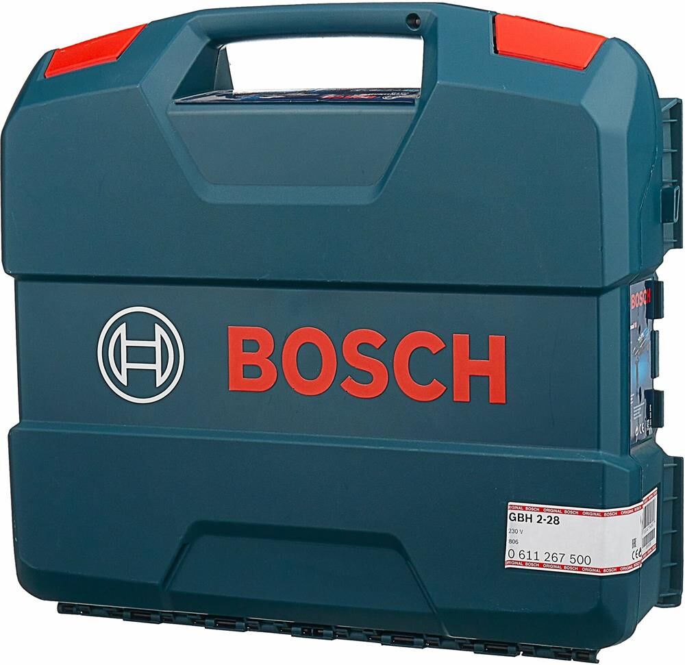 Потребляемая мощность: 880. Количество скоростей: односкоростной. Наличие функции "сверление": есть. Наличие функции "сверление с ударом": есть. Наличие функции "удар без сверления": есть. Максимальная энергия удара: 3.2. Количество патронов в комплекте: один. Тип основного патрона: SDS-plus. Максимальный диаметр сверления (сталь): 13. Макс. диаметр сверления полыми коронками: 68. Максимальный диаметр сверления (дерево): 30. Наличие функции "реверс": есть. Наличие предохранительной муфты: есть. Встроенный фонарик: нет. Дополнительная рукоятка: есть. Ограничитель глубины сверления: есть. Жесткий кейс в комплекте: есть. Вес инструмента: 2.9. Длина сетевого кабеля: 4. Длина инструмента: 216. Высота инструмента: 216. Комплект поставки: Перфоратор Bosch GBH 2-28, ограничитель глубины 210 мм., дополнительная рукоятка, салфетка, инструкция, кейс.. Тип электропитания: от электросети. Габариты упаковки (ед) ДхШхВ: 0.451x0.37x0.12. Вес упаковки (ед): 3.9. Страна производства: Германия. Гарантия: 12 мес.. Число оборотов