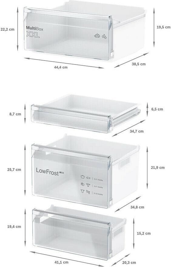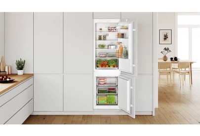 Тип встраивания: полновстраиваемый. Количество камер: двухкамерный. Расположение морозильной камеры: снизу. Тип управления: электронное. Класс энергопотребления: A++. Тип размораживания холодильной камеры: No Frost. Тип размораживания морозильной камеры: No Frost. Общий объем холодильника: 260. Общий объем холодильной камеры: 184. Общий объем морозильной камеры: 76. Количество компрессоров: 1. Мощность замораживания: 4. Уровень шума: 35. Хранение при отключении питания: 10. Количество полок в холодильной камере: 4. Материал полок: стекло. Количество ящиков в морозильной камере: 3. Направление открывания двери: вправо. Глубина ниши: 55. Хладагент: R600a. Количество ящиков в холодильной камере: 1. Количество дверей: 2. Габариты упаковки (ед) ДхШхВ: 0.6x0.64x1.825. Вес упаковки (ед): 62. Входное напряжение (макс): 240. Входное напряжение (мин): 220. Европейский класс энергопотребления: E. Количество полок на дверце: 3. Наличие морозильной камеры: есть. Температура холодильной камеры max: 8. Температура холодильн