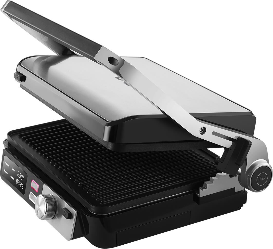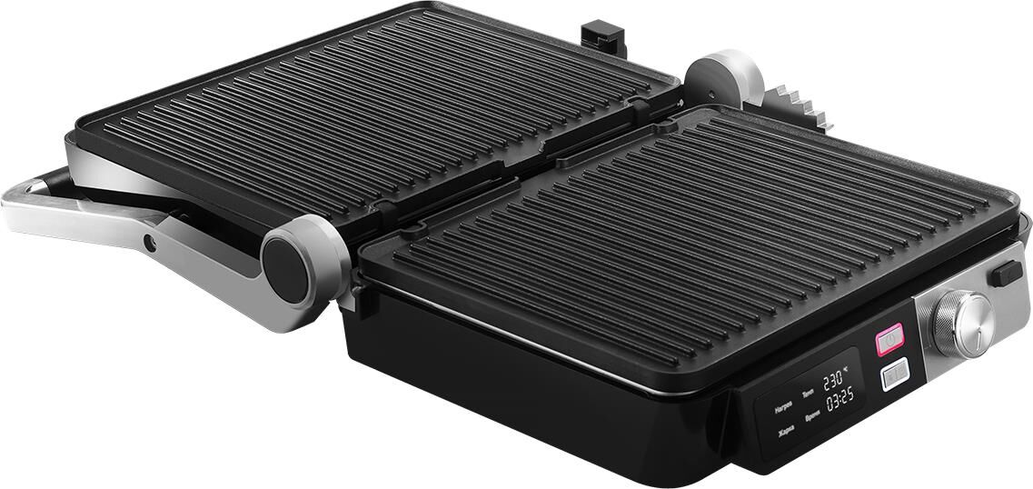 3 в1 гриль, барбекю, духовка / Mощность:2000 Вт / Максимальная температура 230 градусов / Съемные панели с встроенными нагревательными элементами / Электронная панель управления / Покрытие Non-Stick PRO / Режим барбекю / Регулятор высоты крышки / Приготовление без лишнего масла и жира