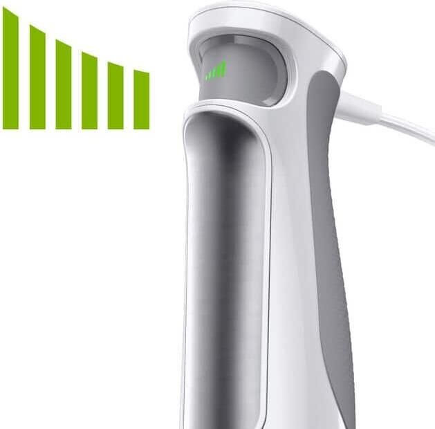 Тип: погружной. Мощность: 1000. Турборежим: есть. Материал погружной части: нержавеющая сталь. Электропитание: от сети. Регулировка скорости вращения: есть. Регулятор скорости вращения: плавный, бесступенчатый. Материал ножей: нержавеющая сталь. Мойка в посудомоечной машине: да, можно мыть съемные части. Мерный стакан: есть. Длина сетевого шнура: 1.2. Материал корпуса: пластик. Вес товара: 1.3. Габариты упаковки (ед) ДхШхВ: 0.195x0.107x0.265. Вес упаковки (ед): 1.3. Страна производства: Китай. Гарантия: 24 мес.. Размеры (ШхВхГ): 10.2 х 26.3 х 19.1 мм. Цвет: белый/серебристый. Мощность: 1000 Вт. Материал погружной части: нержавеющая сталь. Тип: погружной. Режимы: турборежим. Скоростей/режимов: плавная регулировка скорости
