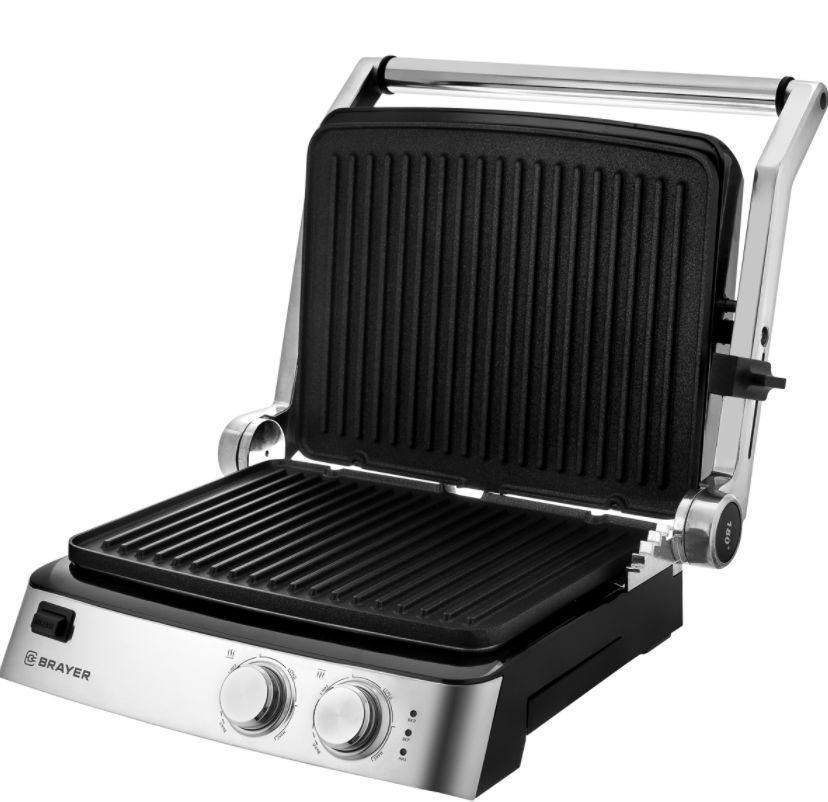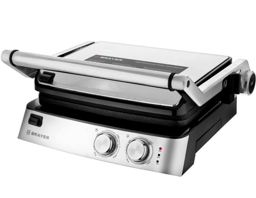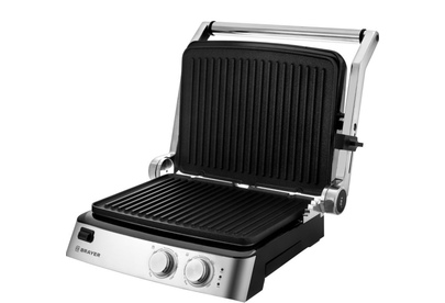 2007BR Гриль – пресс электрический BRAYER, 2000 Вт, съём.пласт 29*23 см, рег.расст,макс.темпер 240 С Мощность 2000 Вт Съёмные моющиеся пластины с антипригарным покрытием Размер пластин: 29х23 см Максимальная температура 240° Регулировка расстояния между пластинами по высоте продукта Корпус из высокопрочного пластика, декорирован нержавеющей сталью Вертикальное хранение для компактного размещения на кухне Открытие крышки на 180° Поддон для сбора жира Защита от перегрева Электропитание 220-240 В, 50-60 Гц