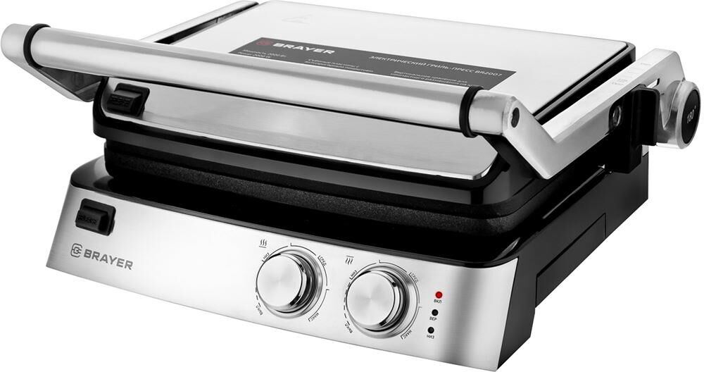 2007BR Гриль – пресс электрический BRAYER, 2000 Вт, съём.пласт 29*23 см, рег.расст,макс.темпер 240 С Мощность 2000 Вт Съёмные моющиеся пластины с антипригарным покрытием Размер пластин: 29х23 см Максимальная температура 240° Регулировка расстояния между пластинами по высоте продукта Корпус из высокопрочного пластика, декорирован нержавеющей сталью Вертикальное хранение для компактного размещения на кухне Открытие крышки на 180° Поддон для сбора жира Защита от перегрева Электропитание 220-240 В, 50-60 Гц