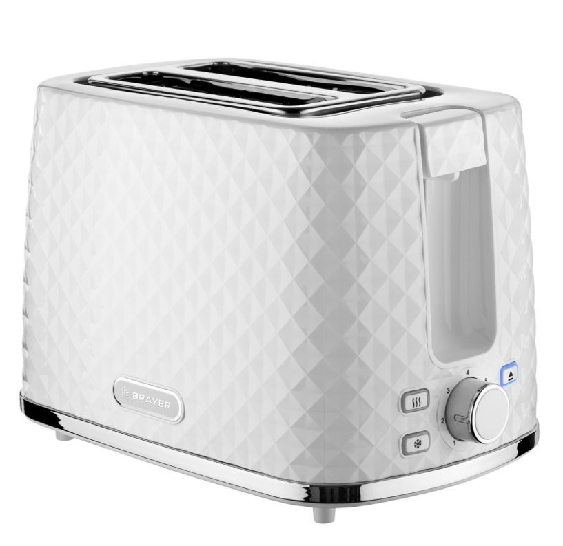 2101BR Тостер BRAYER, 930 Вт, 7 реж, автодогр, размор, отмена, автоотключ,2 тоста одновр, съем.подд Максимальная мощность 930 Вт Электронное управление 7 режимов обжаривания хлеба Приготовление 2-х тостов одновременно Функция подогрева Функция разморозки Функция «отмена» Автоотключение Автоматический выброс тостов Автоматическое центрирование тостов Съёмный поддон для сбора крошек Электропитание 220-240В, 50-60 Гц