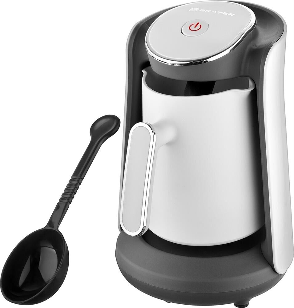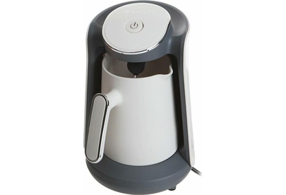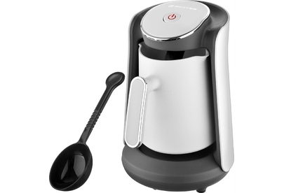 Для приготовления кофе по-турецки. Корпус из высококачественного пластика. Мощность 500 Вт. Объём 0,5 л. Время приготовления 3 минуты. Скрытый нагревательный элемент. Автоотключение при закипании. Автоотключение при отсутствии воды. Световой индикатор работы. Звуковой сигнал по окончании работы. Поворачивающийся на 360° корпус. Электропитание 220-240 В., ~50-60 Гц..