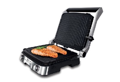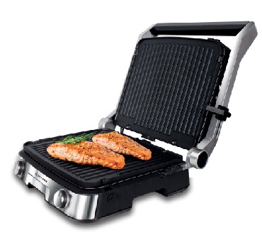 антипригарное покрытие, регулировка высоты верхней панели, поддон для сбора жира, контактный гриль, решетка