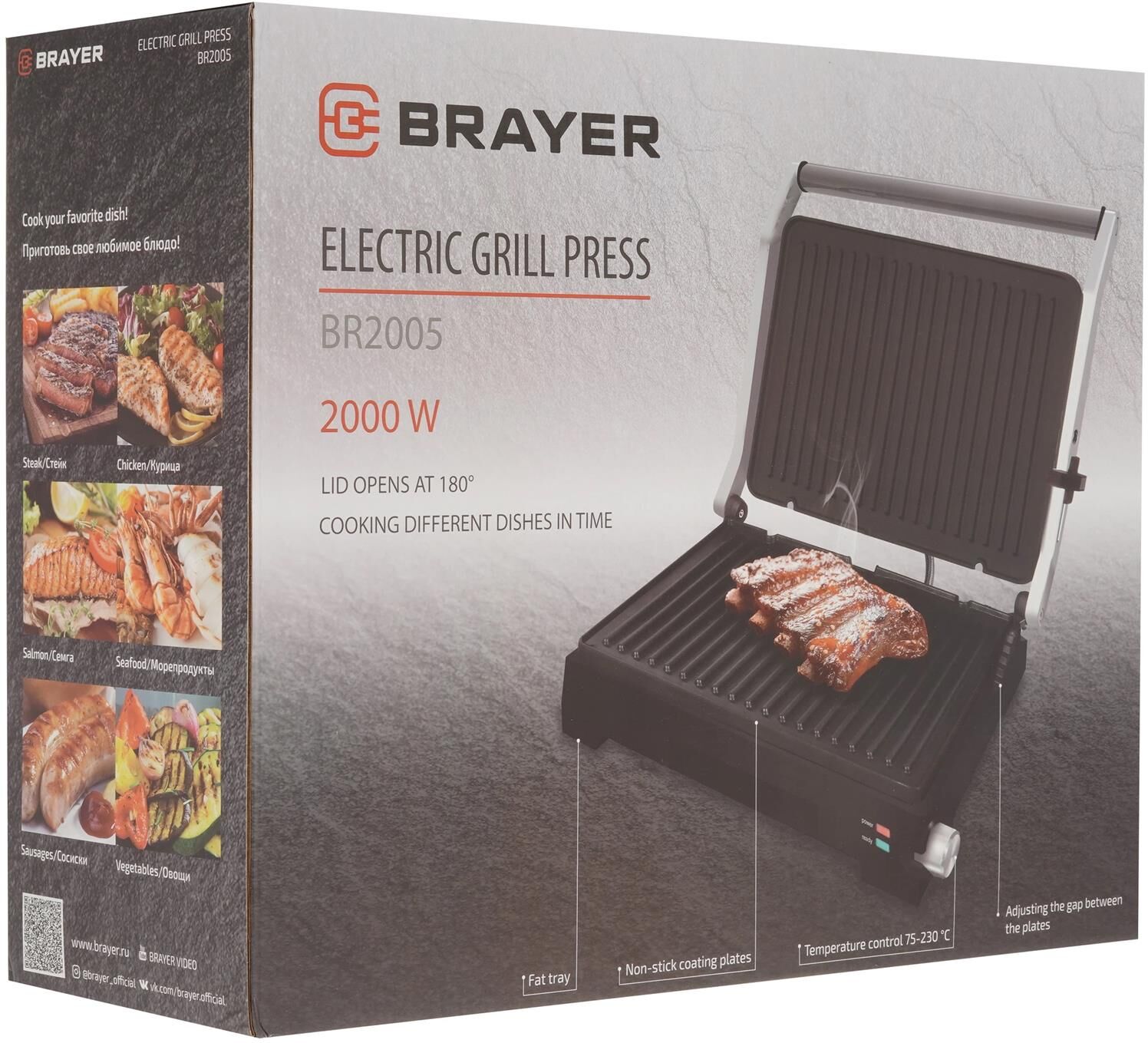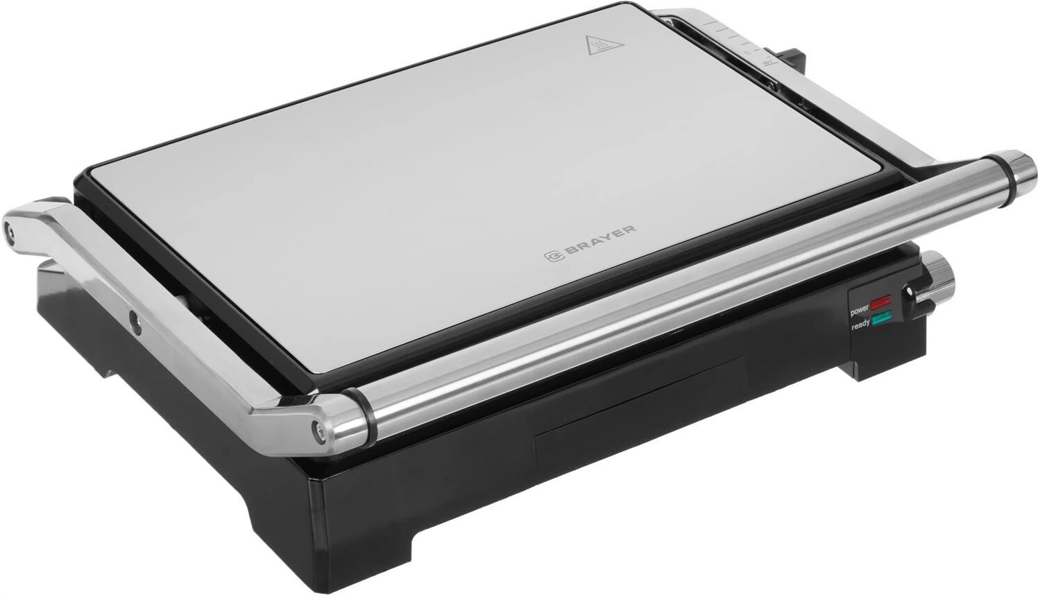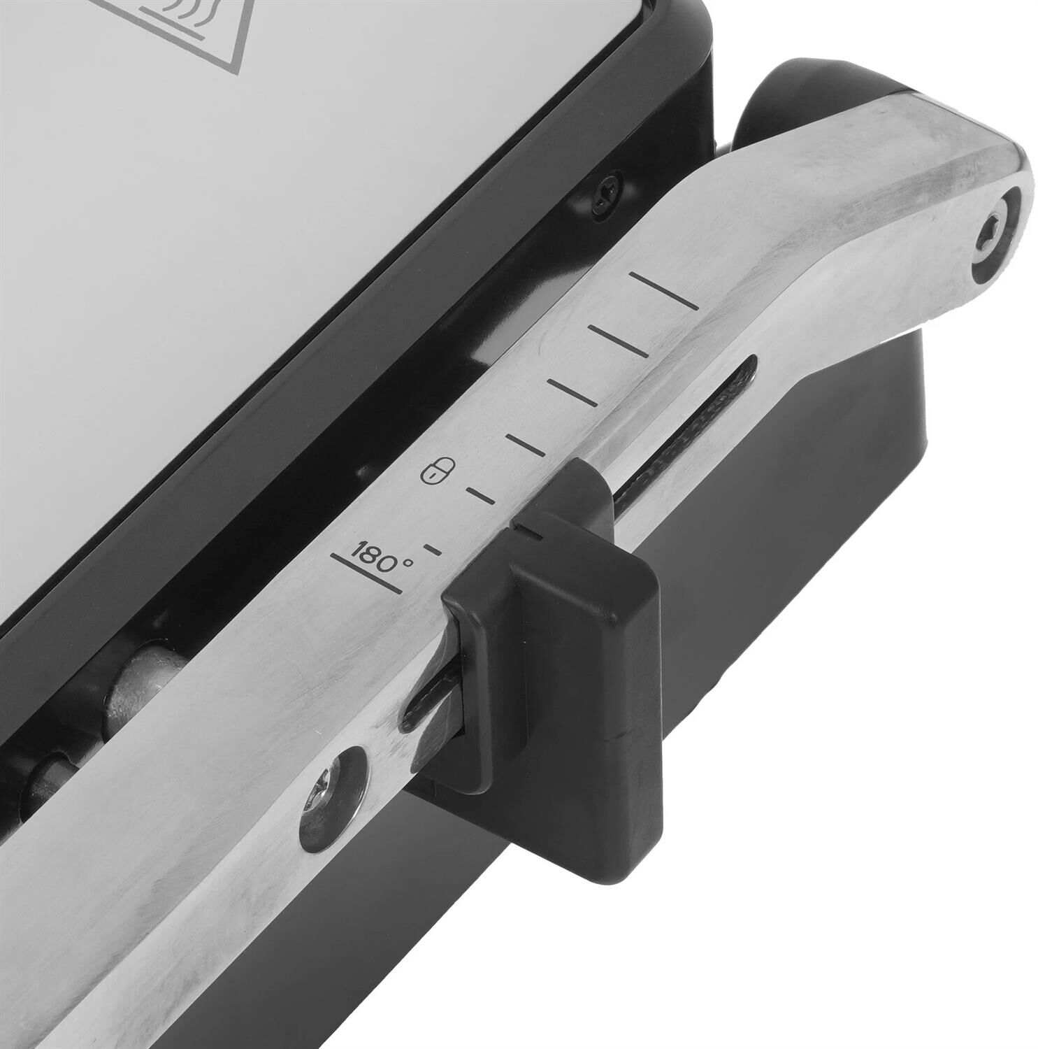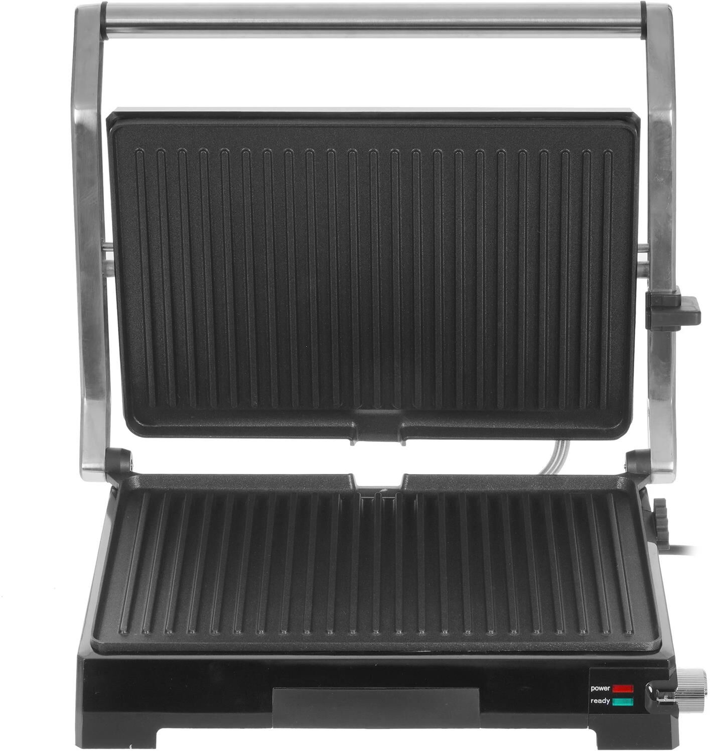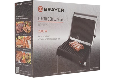 Мощность 2000 Вт Антипригарное покрытие Размер пластин 34*23,5 см Максимальная температура 230° Регулировать расстояния между пластинами по высоте продукта Корпус из высокопрочного пластика, декорирован нержавеющей сталью Открытие крышки 105-180 ° Регулировка температуры Поддон для сбора жира Индикатор готовности и питания Электропитание 220-240 В, 50 Гц