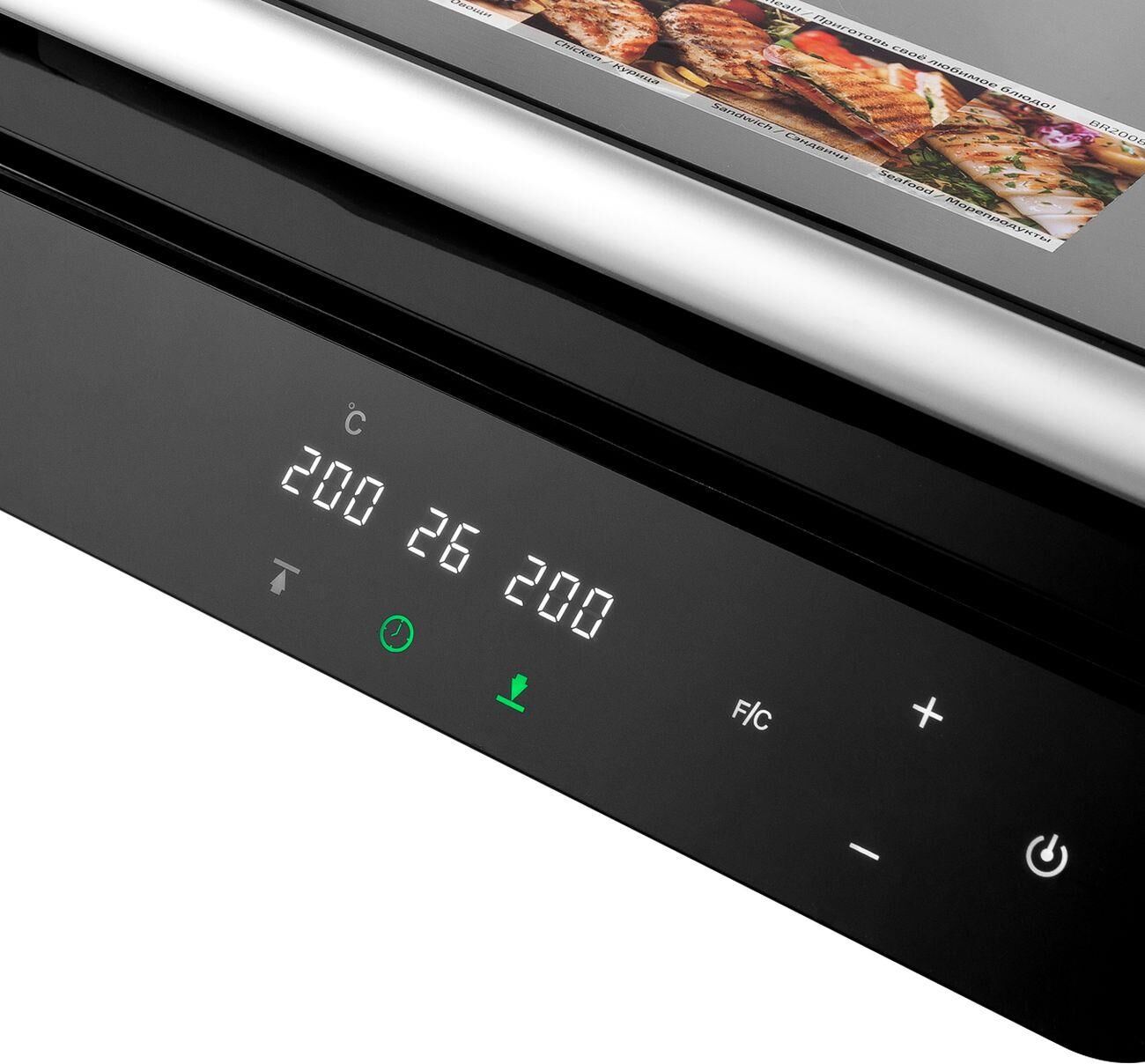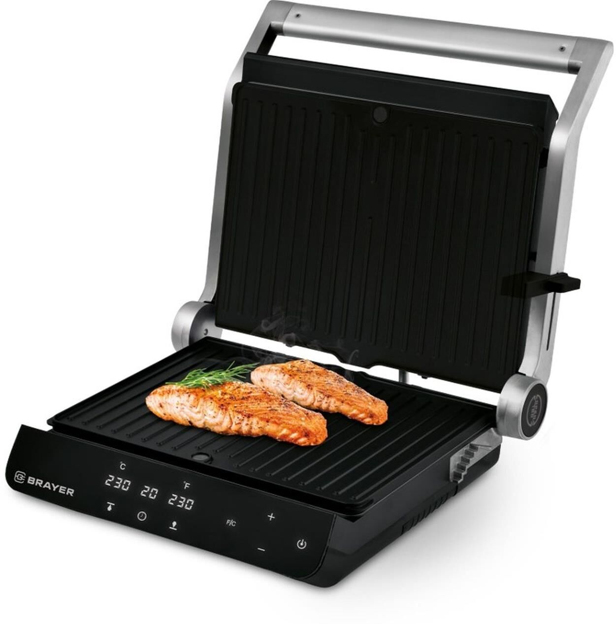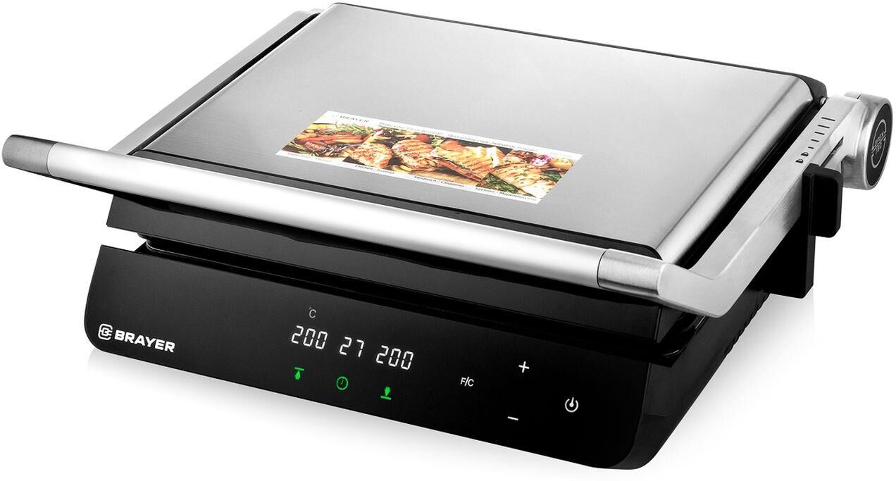 Мощность 2000 Вт Двухсторонние съемные моющиеся пластины с антипригарным покрытием 2 поверхности: - рифленая для стейков - плоская для блинчиков и овощей Температура нагрева пластин 230 °С Размер пластин 24,5x33 см LED-дисплей Регулировка расстояния между пластинами по высоте продукта Нагревательные элементы в верхней и нижней частях гриля Корпус из высокопрочного пластика, декорирован нержавеющей сталью Открытие крышки на 105°-180° Поддон для сбора жира Индикатор питания Электропитание 220-240 В, ~50-60 Гц