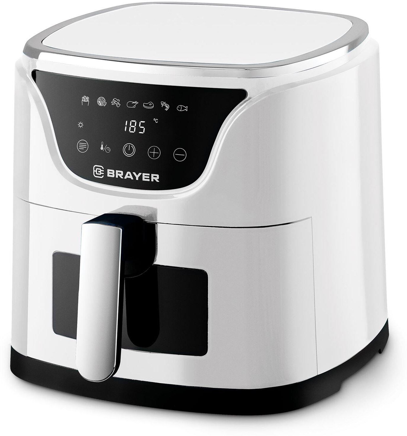 Мощность 1500 Вт Объем 5 л 7 программ: фри, пицца, курица, крылья, мясо, креветки, рыба Корпус из высокопрочного термостойкого пластика Функция подогрева пищи Сенсорное управление LCD-дисплей Регулировка температуры 80–200 °С Таймер до 60 мин Съемная решетка с антипригарным покрытием Звуковой сигнал готовности блюда Электропитание 220-240 В, ~ 50-60 Гц