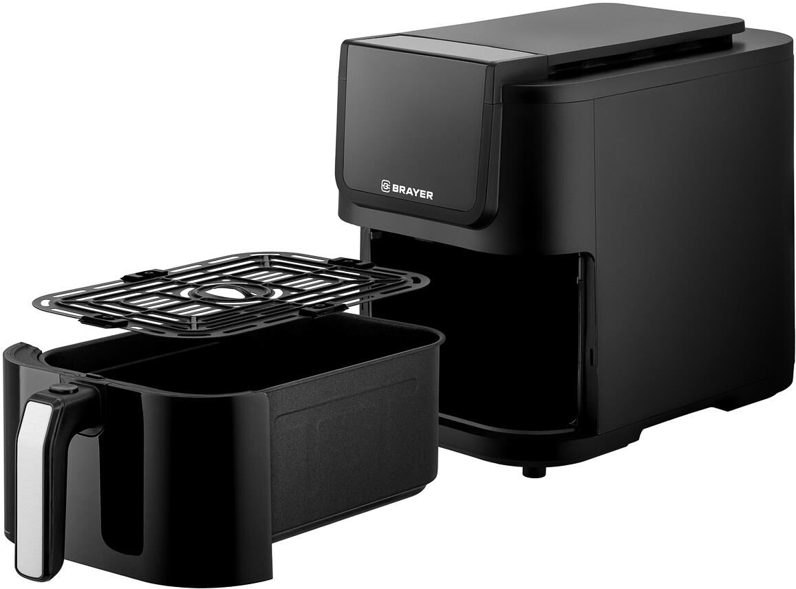 Мощность 1500 Вт Объем 5 л 8 программ: креветки, мясо, крылья, овощи, выпечка, фри, рыба, бекон Удлиненная корзина Корпус из высокопрочного термостойкого пластика Сенсорное управление LCD-дисплей Смотровое окно Регулировка температуры 40–200 °С Таймер до 60 мин Съемная решетка с антипригарным покрытием Электропитание 220-240 В, ~ 50-60 Гц