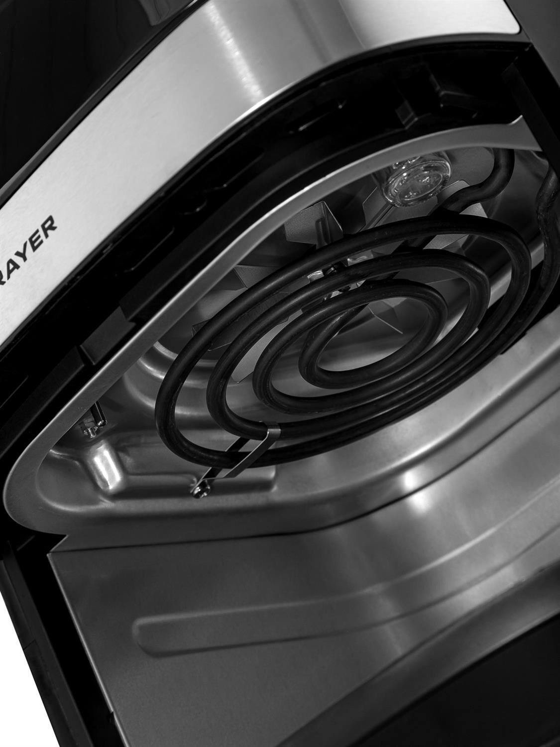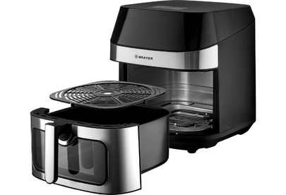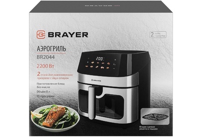 Мощность 1700 Вт Объем 8 л 10 программ: разморозка, фри, голень, колбаски, рыба, морепродукты, пицца, мясо, кекс, сушка 2 тэна для равномерного прогрева с двух сторон Корпус из высокопрочного пластика, декорирован нержавеющей сталью Функция подогрева пищи Сенсорное управление LCD-дисплей Регулировка температуры 80–200 °С Таймер до 120 мин Съемная решетка с антипригарным покрытием Звуковой сигнал готовности блюда Электропитание 220-240 В, ~ 50-60 Гц