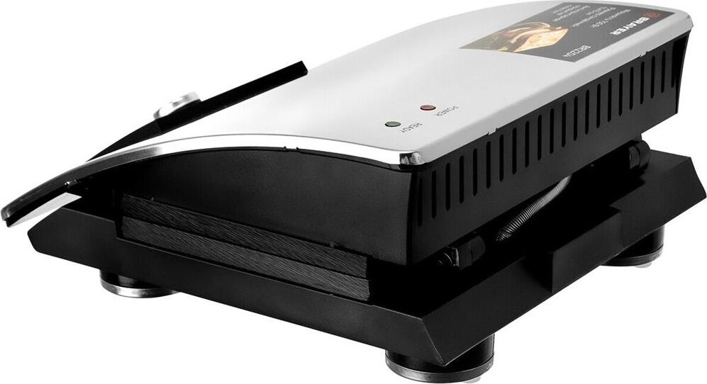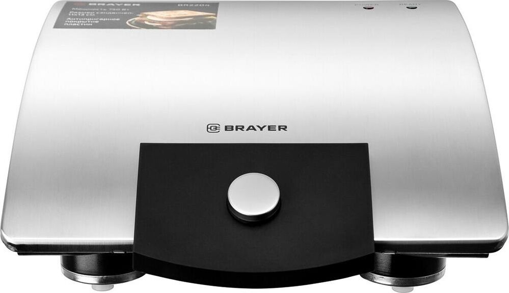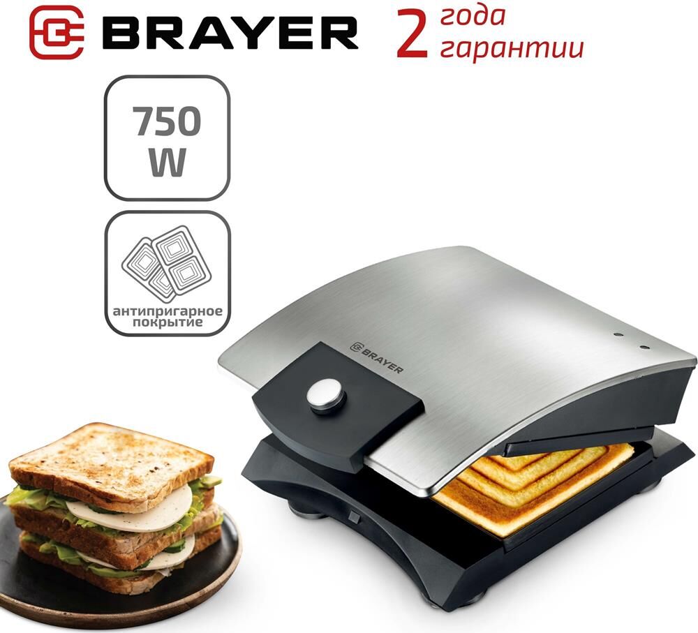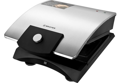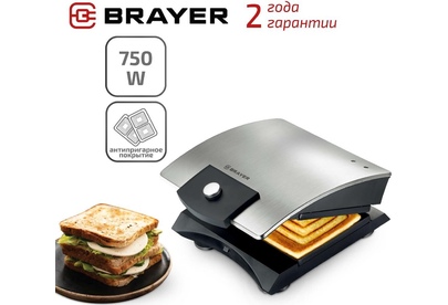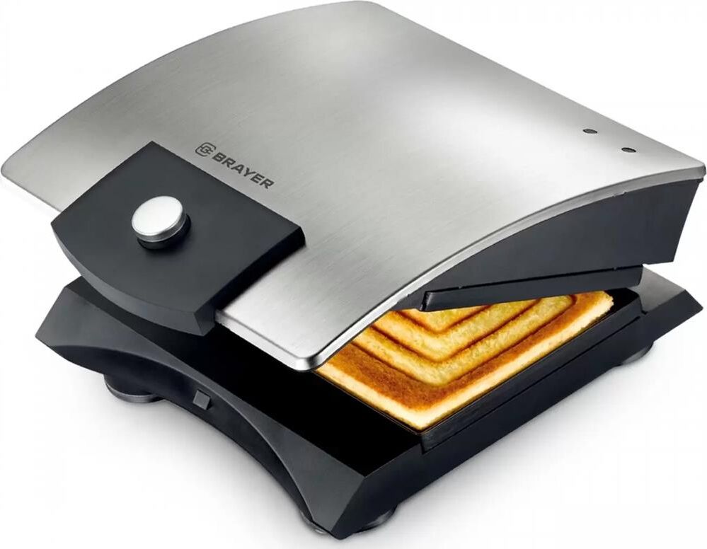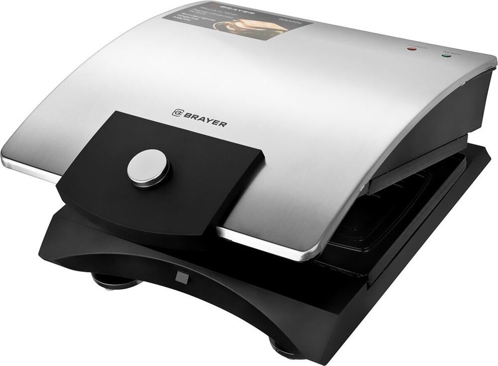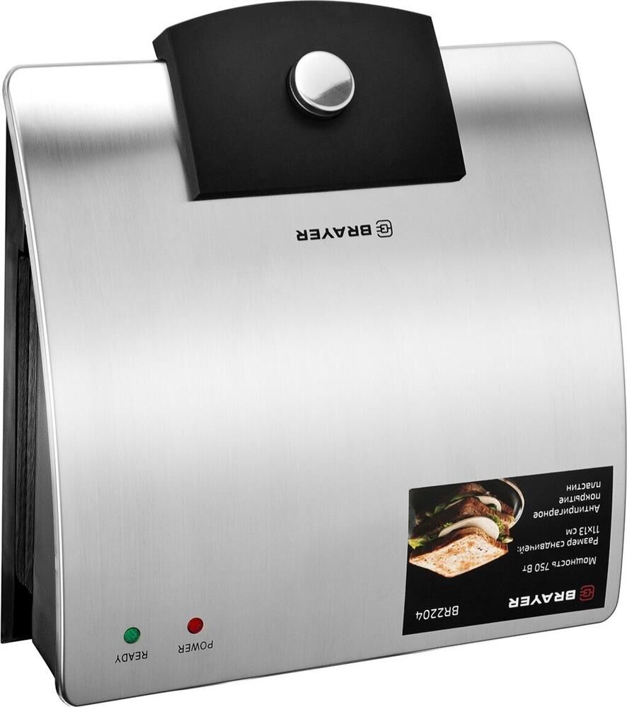 Мощность 750 Вт Пластины для сэндвичей с антипригарным покрытием Размер сэндвичей 11*13 см Корпус из нержавеющей стали Индикатор готовности и работы Кнопка для фиксации панелей Защита от перегрева
