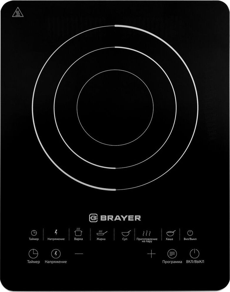 Максимальная мощность 2200 Вт 1 конфорка 21 cm. 5 автоматических программ работы Стеклокерамическая панель Сенсорное управление Выбор температуры (80-270С) Таймер до 3 ч. Автоотключение при отсутствии посуды Блокировка при перегреве