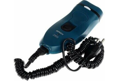 Аккумуляторная со встроенным зарядным устройством. 7 часов зарядки = 30 мин.бритья. 2 бреющих головки. Микродвигатель. Триммер для правки усов и бороды. Напряжение 220 В, 50 Гц. Мощность не более 3 Вт.