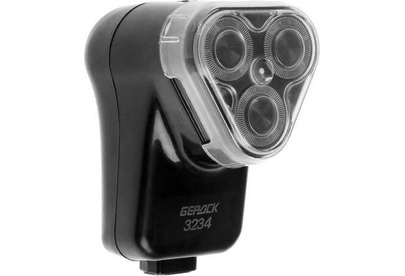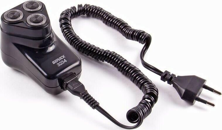 Кол-во оборотов двигателя в мин. 2 400. 3 бреющие головки. Самозатачивающиеся ножи 220 В. Сетевое питание. Надежный, малошумный двигатель, не создающий радиопомех. Съёмный бреющий блок. Настенный держатель.
