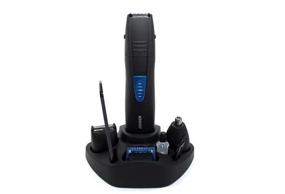 Триммер универсальный (3 в 1) 3В (AAA-2 шт) Характеристики: - Тип элементов питания - 2 х AAA (в комплект батарейка не входит) - Сменные головки: - Головка для носа и ушей - Головка для бритья - Головка для стрижки и подравнивания c регулировкой длины волос 2/4/6/8мм - Качественные стальные ножи, - Корпус покрыт эластомером Триммер удобно хранить на подставке, которая входит в комплект