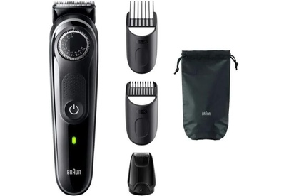 Триммер BRAUN, для бороды и усов, от аккумулятора, сухое, 2 насадки, влажная очистка
