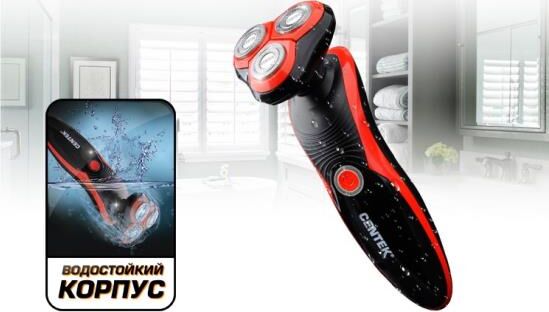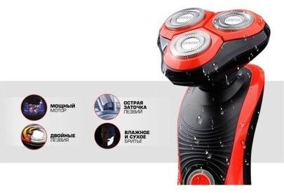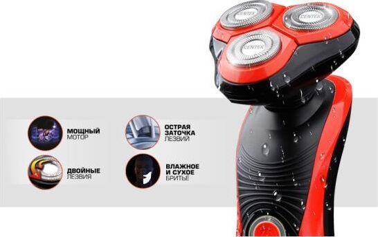 Бритва Centek CT-2168 (красн) ротор 3D, +ВЛАЖНОЕ БРИТЬЁ, 3 плав.головки, 2-ные лезвия, до 50 мин раб