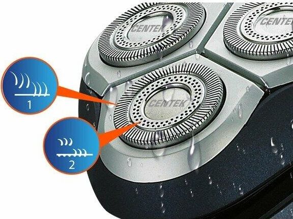 Бритва Centek CT-2171 (черн) ротор 3D, +ВЛАЖНОЕ БРИТЬЁ, 3 плав.головки, триммер, до 50 мин раб
