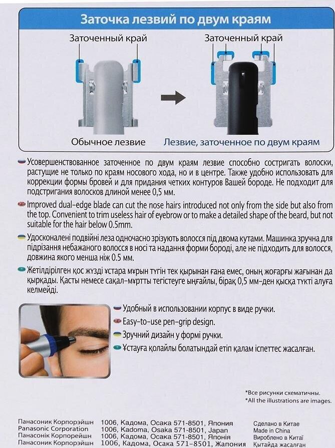 триммер для стрижки в носу и ушах Питание автономное Количество насадок 1 Влажная очистка есть Дополнительная информация работа от батарейки, защитная крышка, щеточка для чистки