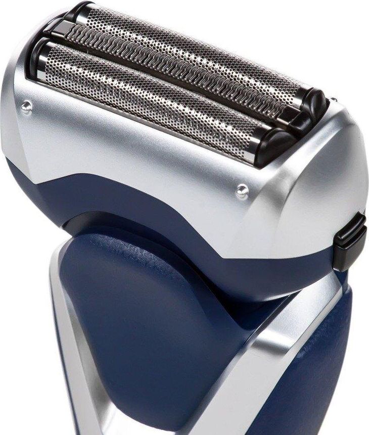Тип: Сеточная электробритва. Количество бритвенных головок: 3. Плавающие головки . Способ бритья: Сухое/влажное. Скорость линейного мотора 10000 об/мин. Нескользящая вставка на рукоятке. Водонепроницаемый корпус. Питание: От аккумулятора. Тип аккумулятора: Li-ion. Время работы от аккумулятора 54 минут. Время зарядки аккумулятора до 1 часа. Индикатор степени зарядки.