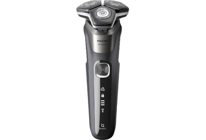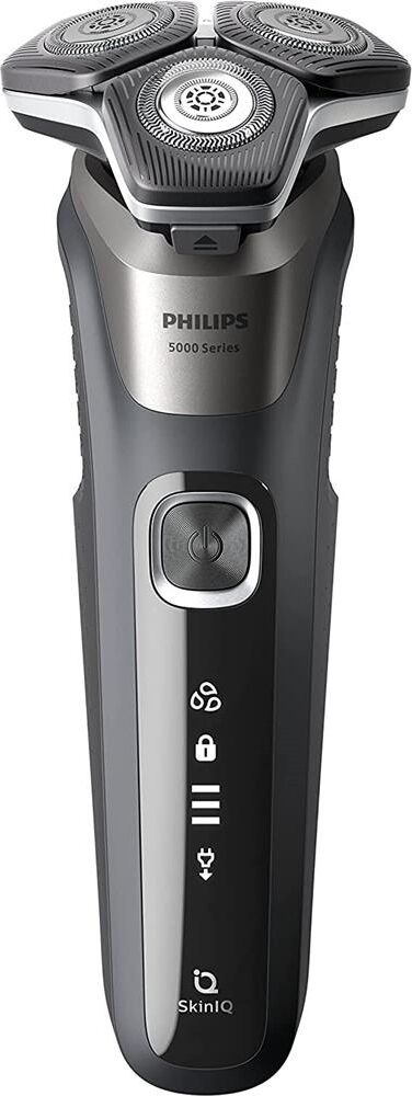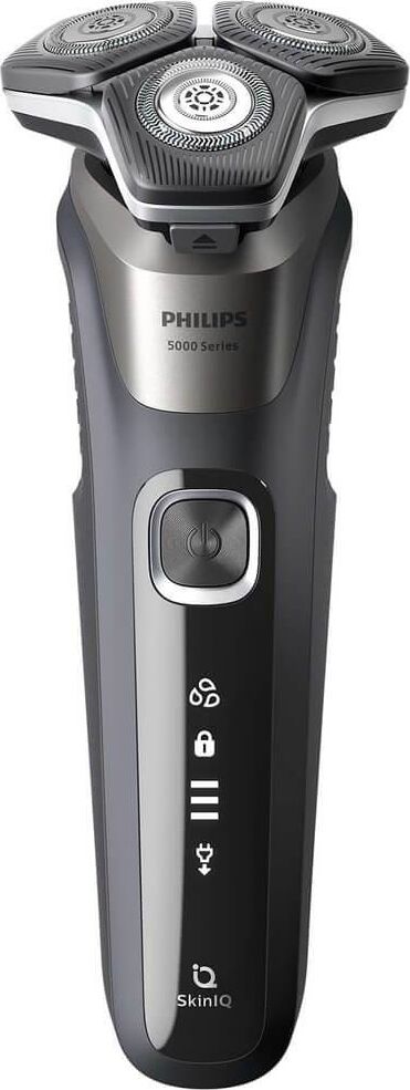 Электробритва для сухого и влажного бритья Series 5000, мощность 9Вт, роторная, Количество бритвенных секций -3, Плавающие головки, Подвижный бритвенный блок, индикатор блокировки, индикатор заряда батареи, индикатор очистки, Отсек для сбора волосков, Режимы и функции: технология SkinIQ, Возможность чистки под струей воды, Автоматическая очистка ,Дорожная блокировка, Источник питания от аккумулятора, Тип элементов питания Li-ion, Время автономной работы 60 мин, Быстрая зарядка, Подставка для зарядки, Щеточка для чистки ,Защитная крышка, Нескользящая вставка на рукоятке, Дорожный чехол , Насадки: триммер, дополнительно головки 5D Pivot & Flex. Цвет черный