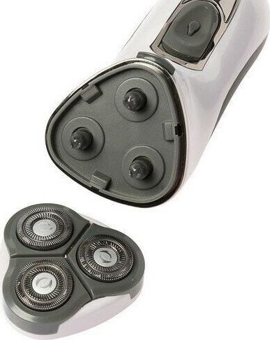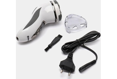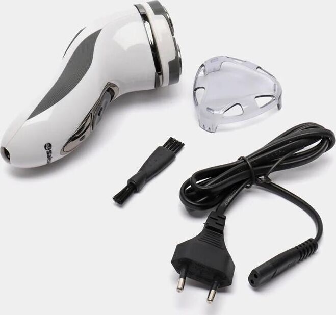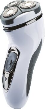 Бритва электрическая, работа от аккумулятора Ni-Cd (600 мА/ч), зарядка от сети 220-240В. 3 плавающие бритвенные головки. Сухое бритье. Бритвенные головки роторные. Щеточка д/очистки, мешочек д/хранения и переноски.