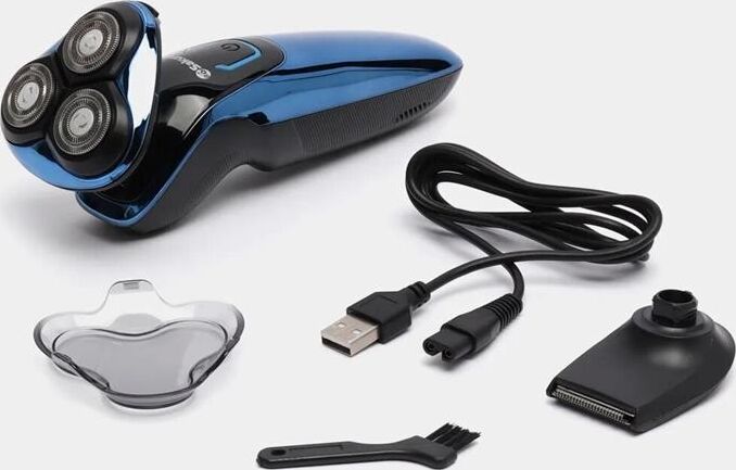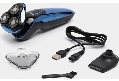 Питание: от аккумулятора Ni-Cd (400 мА/ч 3,6В(2/3AA)х2 ); зарядка от сети 220-240В Бритвенная система: 3 независимые плавающие головки Предназначение: сухое и влажное бритьё Бритвенные головки: роторные Дополнительные характеристики: съёмная насадка-триммер Защита от воды: есть Индикатор заряда батарейки: есть Индикатор блокировки: нет Адаптер питания: есть Защитная крышка: есть Цвет: синий/чёрный Комплектация: Насадка-триммер, адаптер питания, щеточка для очистки Объем 1 шт.: 0,002 м3 Размер индивидуальной упаковки: 125*68*215 мм Размер групповой упаковки: 530*370*480 мм