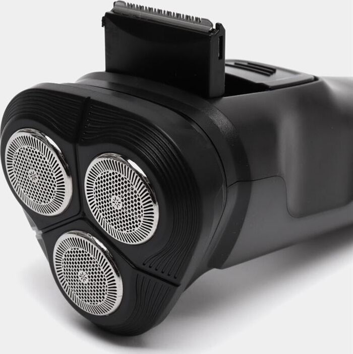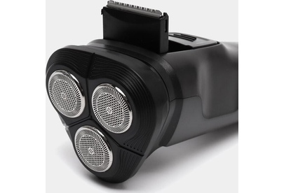 Сухое бритье, 3 бритвенные головки с сеткой из нерж.стали, выдвижной триммер, работа от аккумулятора Ni-Cd (600мА/ч), кабель для зарядки, щеточка для очистки и защитная крышка в комплекте, цвет: чёрный.