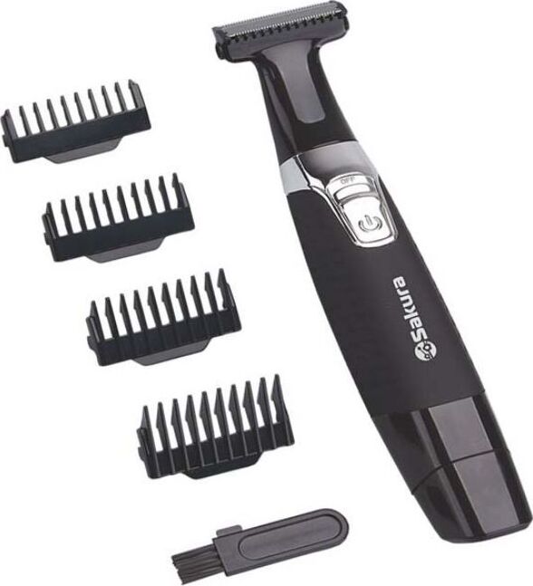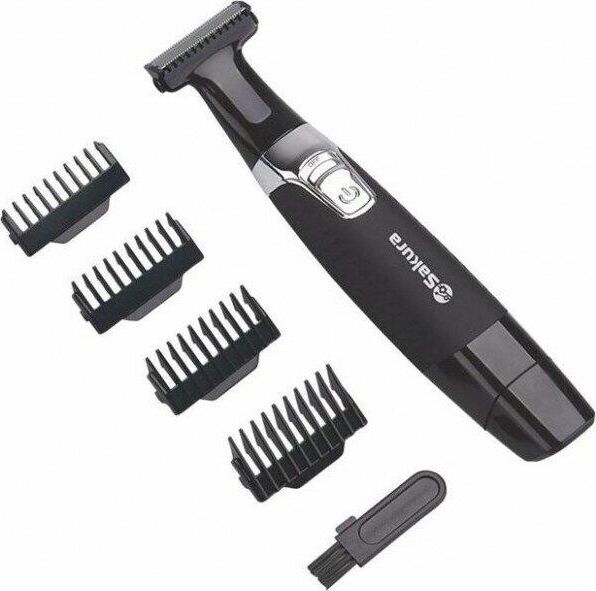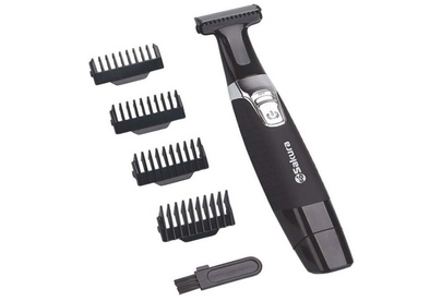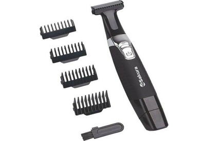 Триммер универсальный - для бороды, висков, тела, острые стальные лезвия, питание от 1хАА, 4 насадки-гребня: 1,2,4,6 мм, цвет: черный.