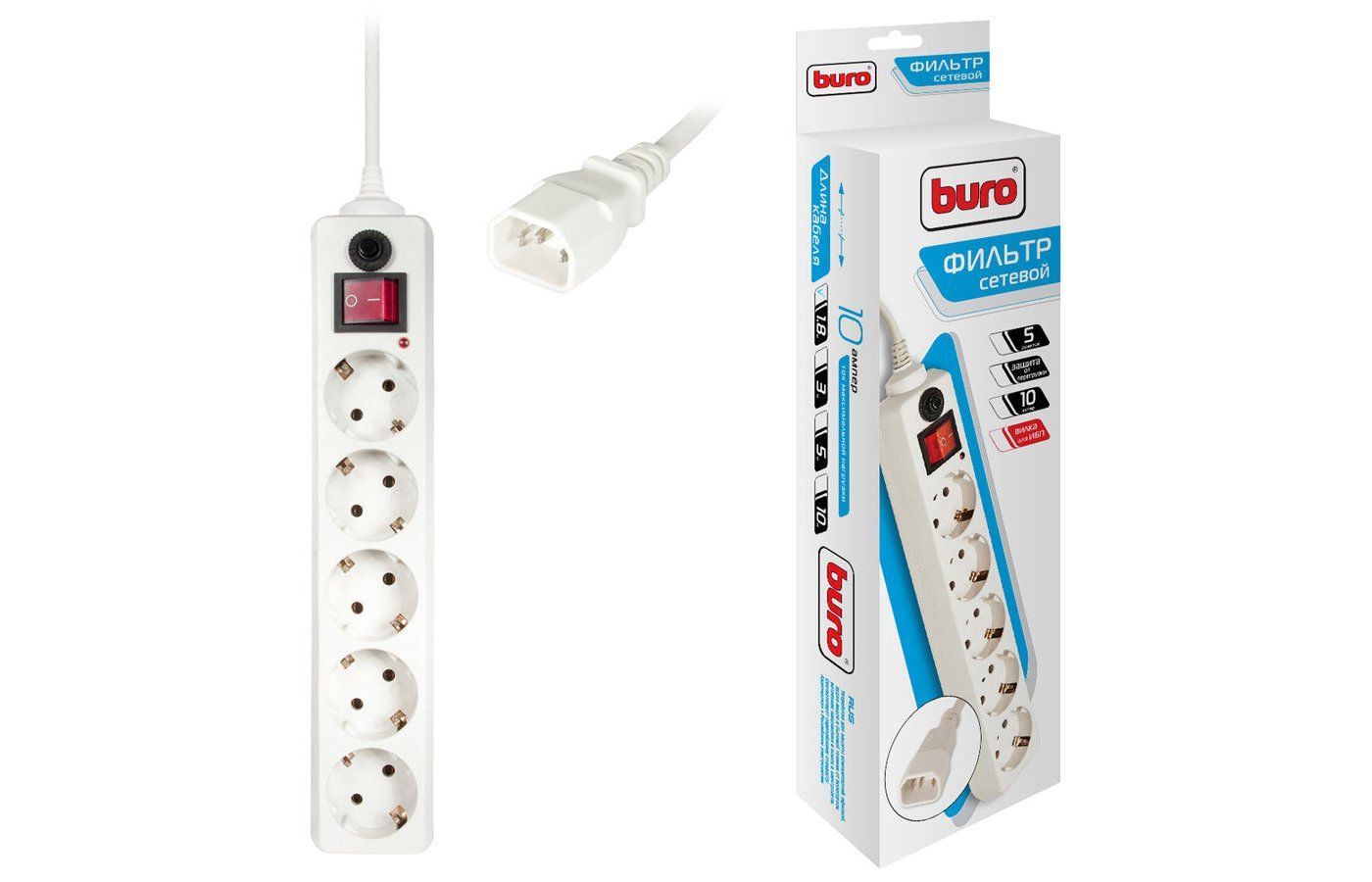 BURO 500SH-1.8-UPS-W 1.8м 5 розеток белый
