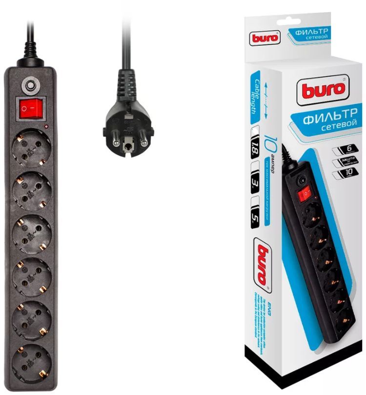 BURO 600SH-1.8-B 1.8м 6 розеток черный