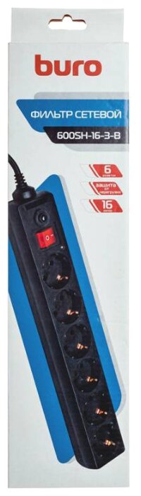 BURO 600SH-16-3-B 3м 6 розеток черный